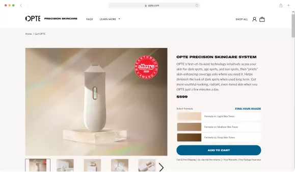 Opte, a leader in advanced skincare technology, improved their conversion rate by emphasizing value proposition messaging and clear call to actions.